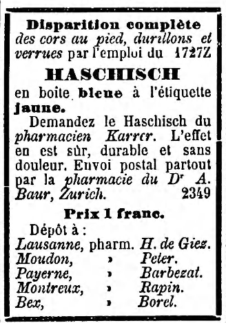 Le Haschisch meilleur remède contre les cors aux pieds, pharmacien Karrer